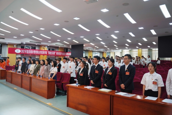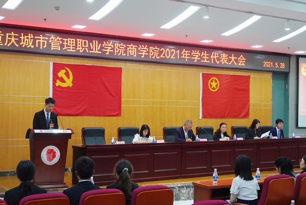 为深入学习贯彻习近平新时代中国特色社会主义思想,全面落实共青团中央、教育部、全国学联、共青团重庆市委员会关于高校学生会改革的文件精神,按照《重庆城市管理职业学院学生会改革推进方案》(重城管院委发〔2020〕37号)文件要求,5月28日,商学院2021年学生代表大会在学校学术报告厅召开。会议由商学院专职组织员、团总支书记汤茹薇主持,商学院党总支书记、院长蒋芹忠、商学院党总支副书记唐鸿铃、校团委办公室主任杨力思、商学院学办主任高瑞娟、学校学生会主席范佳宾、商学院全体辅导员和135名学生代表参加了本次会议。