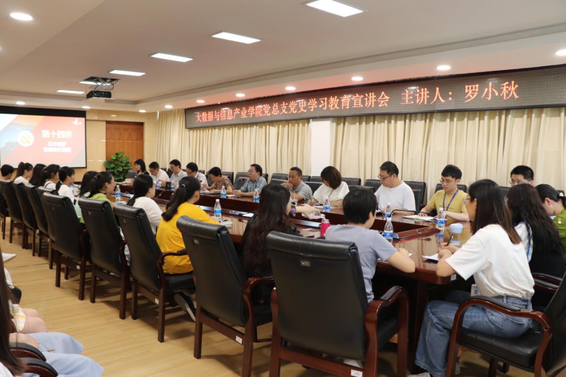 6月1日,学校党委委员、副校长罗小秋为大数据与信息产业学院党总支师生作主题为“以中国梦擘画复兴蓝图”的党史学习教育专题党课。大数据与信息产业学院全体教师党员、学生代表聆听党课。