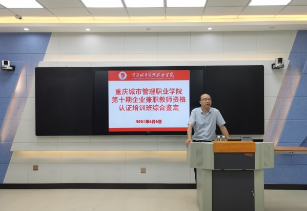 6月6日,我校第十期企业兼职教师资格认证培训班综合鉴定在敏学楼智慧教室2进行。教务处处长柏文涌教授,党委宣传网工部部长、马克思主义学院院长喻永均教授,大数据与信息产业学院党总支书记董勇教授,质量管理中心主任孙玉中教授,教务处教师发展中心主任黄倩教授对22名参加培训的企业兼职教师进行综合鉴定。
