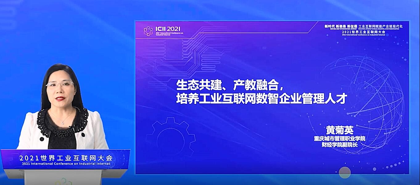 黄菊英教授在“工业互联网创新产业链高质量论坛”分论坛中就“生态共建、产教融合,培养工业互联网数智企业管理人才”进行交流。她就我校将数智化工业互联网模式运用在实战教学中培养大数据智能化财税复合型高端人才上的一些思路和想法作了分享。