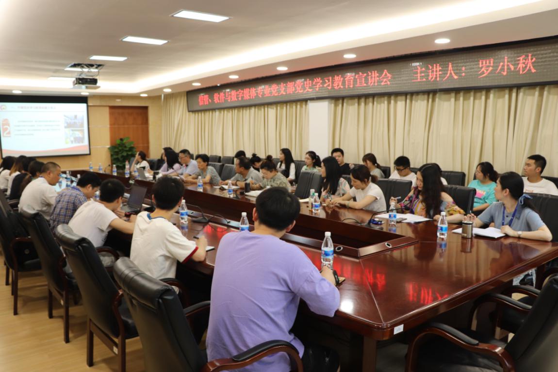 6月15日,学校党委委员、副校长罗小秋在办公楼第二会议室为大数据与信息产业学院党总支信管、软件与数字媒体专业党支部师生作主题为“奋斗百年路,启航新征程”的党史学习教育宣讲。