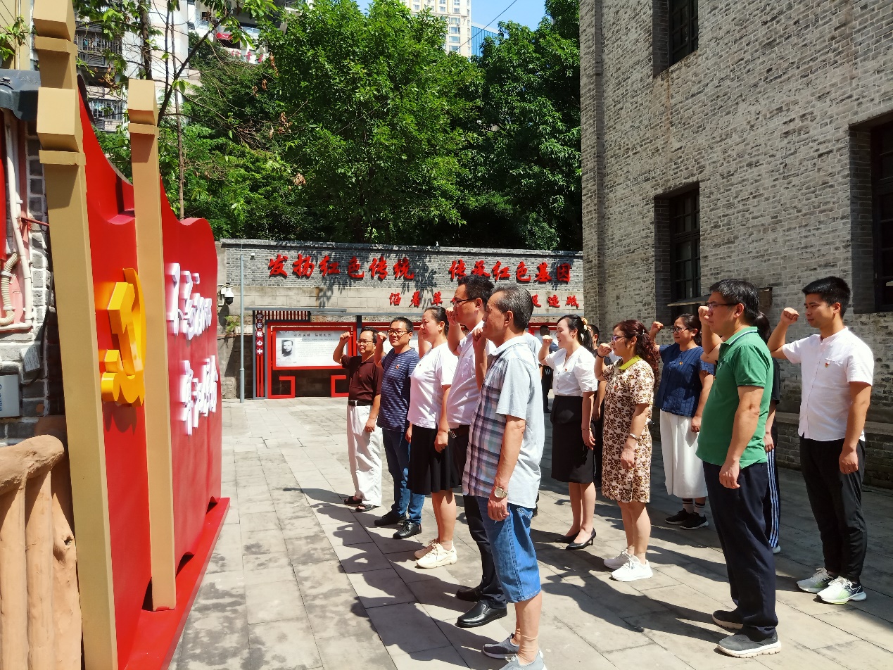 在中共重庆地方执行委员会旧址,大家聆听了杨闇公、吴玉章等革命烈士面对军阀的利诱和严刑,坚贞不屈、受尽折磨、壮烈牺牲的故事。一张张老照片、一件件老物件,再现了革命先辈们为理想而奋斗的艰辛历程,使大家为之动容。全体党员跟随讲解员重温革命工作者的生平事迹、照片和珍贵藏品,这些珍贵史料彰显了信仰的力量,给全体党员们带来思想上的补给。在孙雪梅和孙玉中书记的带领下,全体党员举起右手,集体重温入党誓词。