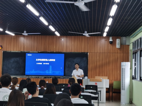 授牌仪式后,李永健总监进行了“从学生到职场人的转变”主题讲座,金辉物业订单班学员、物业2019级全体学生参加讲座。李永健总监首先介绍了怎样界定观点和事实,分享了学校教育与职场管理的差异,并强调了职场对人才的需求。讲座中同学们认真聆听,与企业总监进行了良好互动,感受现代职场氛围,为即将进入顶岗实习、适应企业新环境进行了有效地提前热身和准备。