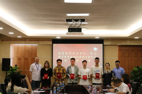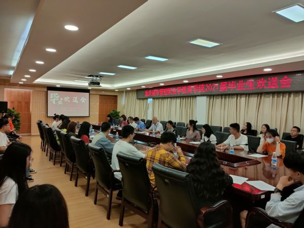 6月27日,商学院在办公楼第二会议室举行2021届毕业生欢送会。商学院科级以上干部、毕业班辅导员、教师代表、2021届优秀学生代表50余人参加。