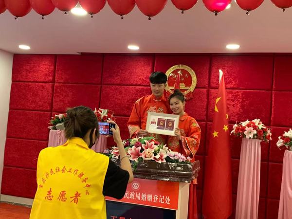 为帮助大众正确认识爱情婚姻的本质,培养正确的恋爱婚姻观,5月20日,在谐音寓意“我爱你”的日子里,婚庆专业教师党员贾丽彬指导婚庆专业部分学生参与了沙坪坝区民政局婚姻登记处组织开展的“吾尔相约,爱满一生”大型活动,向居民宣传婚恋相关的内容。本次活动主要包含“缘相聚”“情相悦”“礼相成”“爱相和”四个环节,旨在向居民宣传婚恋相关的内容,以改变不文明的婚恋观,倡导文明婚恋,营造婚恋新风尚。在专业教师的指导下,婚庆专业的学生进行了活动督导、场地布置、爱心小卡片、结婚证明书、化妆、主持等任务,获得了服务对象和沙坪坝区民政局婚姻登记处领导的好评。
