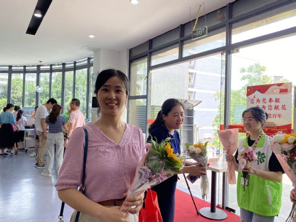 6月30日,在中国共产党成立100周年大会召开前夕,民政管理专业学生在黄静老师指导的《认识实习》课程中,以致敬建党100周年为主题,将社区活动策划与社区服务有机结合,在教职工餐厅开展了向学校党员教师鲜花的活动。既锻炼了同学们的活动策划和实践能力,又表达了对党的生日的祝福,也让党员同志们深受鼓舞。
