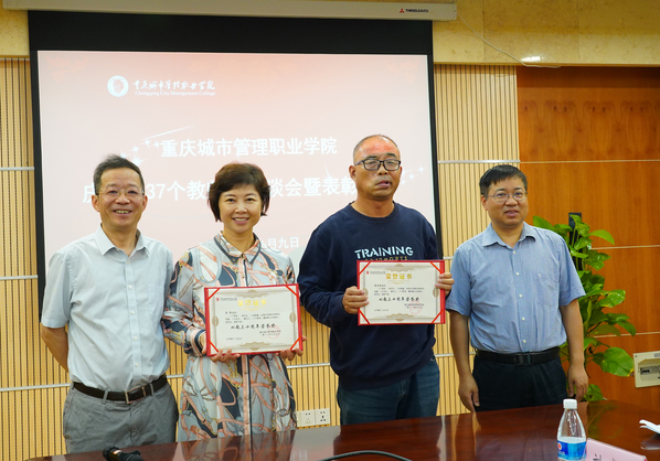 会议首先举行表彰活动。与会校领导分别宣读了从教三十周年教师、全国技术能手、课程思政教学名师、2021年重庆市教书育人楷模、最美巴渝工匠、“十育人”标兵表彰文件,并为受表彰教师颁发了荣誉证书。
