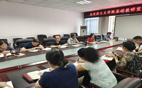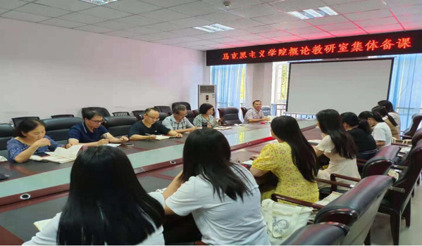 为深入学习贯彻习近平新时代中国特色社会主义思想,进一步加强我校思想政治理论课建设工作,更好发挥思想政治理论课立德树人关键课程作用,准确把握新教材精神实质,打造新时代的“思政金课”,9月8日,马克思主义学院在继续教育学院会议室组织开展2021年秋季学期集体备课会。马克思主义学院副院长杨飏,学校督导陈德才、陈友教授及学院全体专任教师参加会议。