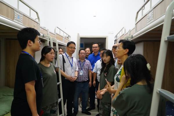 党委副书记张新,副校长罗小秋,纪委书记杨寿康,副校长袁国、莫堃分别走访慰问了秋实园三舍、宁静园一舍、宁静园二舍、春华园一舍等的新生寝室,寄语同学们以崭新的面貌投入到大学生活中,做好学业规划,全面提升自身素质,在大学三年里,学有所成、学有所获、学有所用,努力成为高素质技术技能人才,争做能工巧匠、大国工匠。