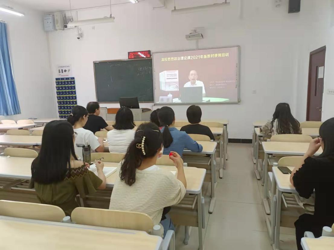 为深入学习贯彻习近平新时代中国特色社会主义思想,准确把握《毛泽东思想和中国特色社会主义理论体系概论》《思想道德与法治》等课程新教材的主旨思想,9月27-28日,全国高校思想政治理论课2021年版教材使用现场培训在北京举行。按照市委教育工委、市教委要求,我校组织思想政治理论课教师参加校级分会场培训。