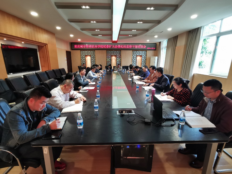 10月14日,为进一步提升我校纪检监察干部能力素质,重庆城市管理职业学院纪委、市监委驻校监察专员办公室举办纪检监察干部集中培训。校党委委员、学校纪委书记、市监委驻校监察专员杨寿康同志主持培训会议并讲话,校纪委委员、各党总支(直属党支部)纪检委员、纪检监察室全体人员参加培训。