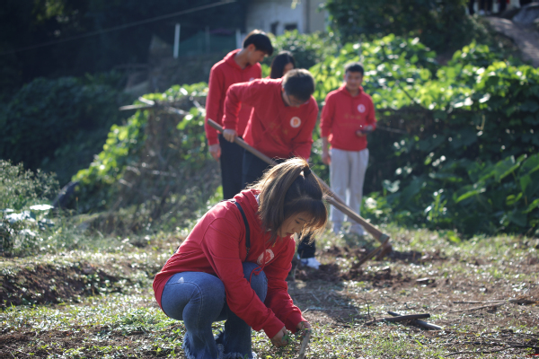 活动中,在当地村民的带领下,青马学员来到种植地了解了常见农具使用方法和作物的种植管理及农作物生长的各个环节。之后大家纷纷接过锄头或镰刀,热火朝天的开始耕作。同学们互助合作,锄地的动作从最初的生涩到逐渐的娴熟,起垄、开沟、撒种、粑地,忙的热火朝天,直到活动结束大家都还在探讨农事劳作的体悟。