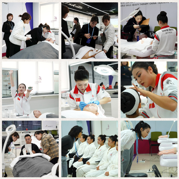 11月26日-28日,第46届世界技能大赛美容项目第一阶段选拔赛在致用楼世界技能大赛中国集训基地美容项目基地顺利进行。选拔赛包含高级面部护理、简单面部护理、身体护理、手足护理、睫毛种植、美甲、化妆、脱毛八个项目五个模块,旨在选出5名种子选手,进入第二阶段的集训及选拔,最终5进1 选出1名选手,代表中国队征战2022年10月在我国上海举行的第46届世界技能大赛美容项目决赛。重庆市人力资源和社会保障部职建处彭璐副处长、重庆市职业技能鉴定中心蹇晓林主任、王华源副主任、学校罗小秋副院长、周毅副院长巡视了考核现场。