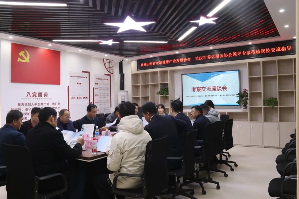 12月2日,云南省老龄健康产业发展协会会长王建新一行8人前来学校考察交流,重庆市养老服务协会会长郭小忠、学校党委书记任波、副校长袁国,智慧康养学院党总支书记张俊、院长田奇恒等参与了接待。