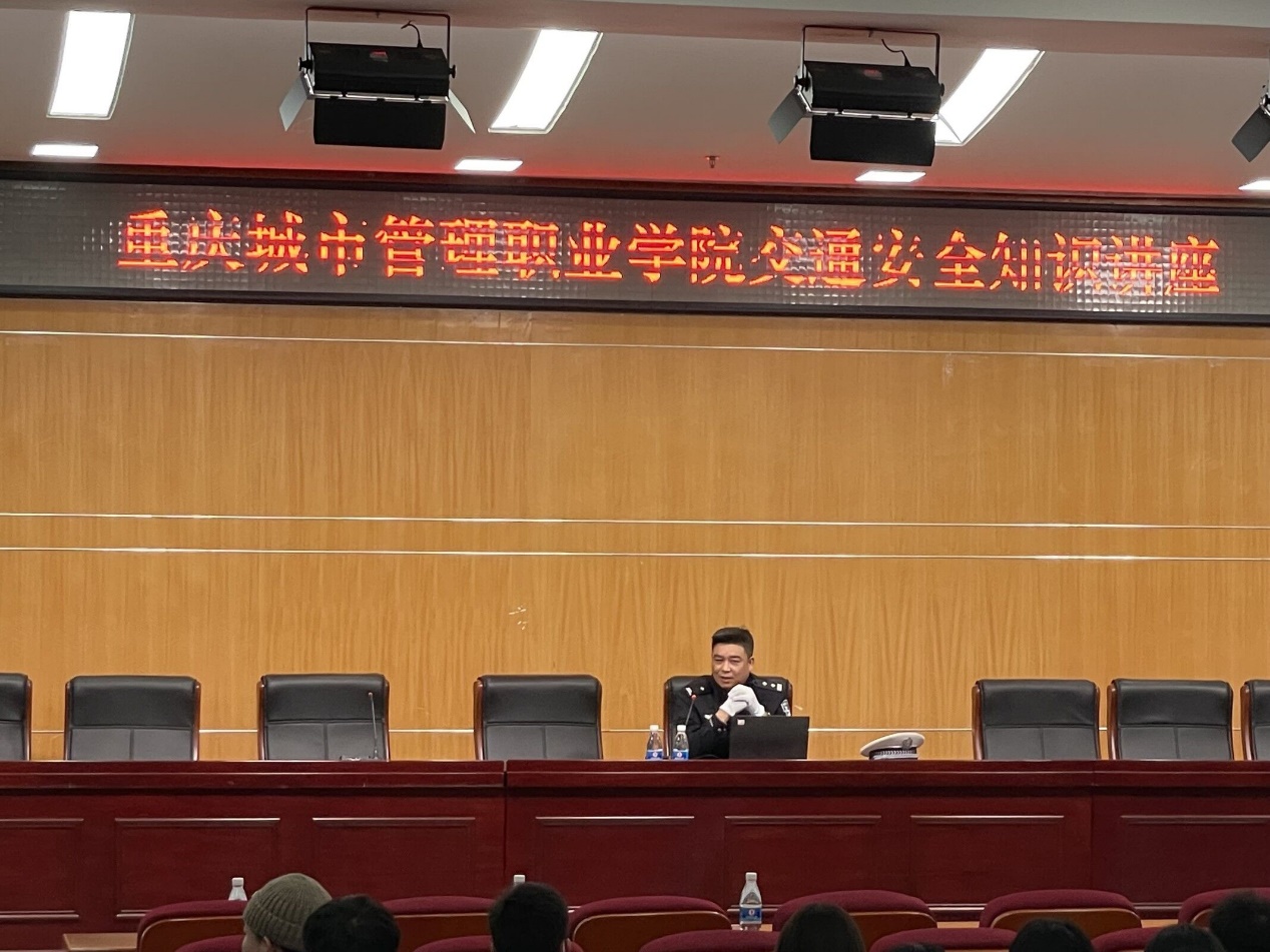 为进一步提高师生的交通安全意识,积极倡导生命至上、安全第一理念,12月15日,我校邀请重庆市公安局高新区分局交巡警支队民警到校开展“守法规、知礼让、安全文明出行”交通安全专题讲座,全校师生代表400余人参加。