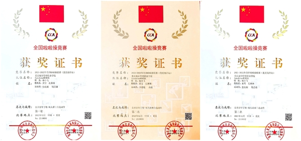 首次亮相,惊艳全场!我校啦啦操队员为首次参加此类比赛,在领队杨小飞、教练员黄雪和孔琳琳老师的带领下,队员们排除万难、齐心协力、刻苦训练、热情洋溢,通过3天的激烈比赛,最终获得公开青年丁组双人爵士啦啦操第一名、花球啦啦操第二名、街舞啦啦操第二名的优异成绩。教练员黄雪、孔琳琳被大会授予优秀教练员称号,黄雪同时被评为优秀裁判员。