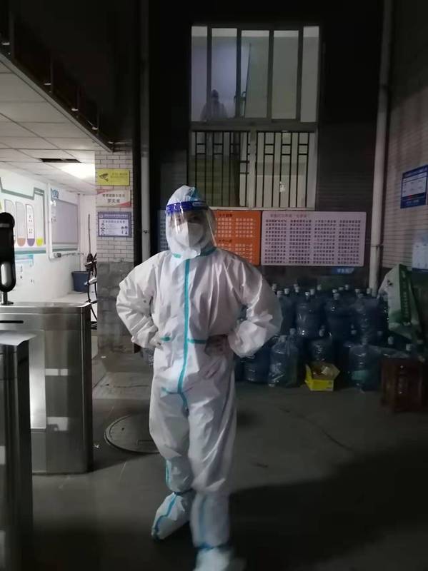 3月11日,疫情突发, 3月12日,这个娇小可爱的85后女孩——方可敬便主动报名,3月14日她入住到学生寝室,跟另外五位教师,共同承担起了六层楼两个单元六七百名同学饮食起居的管理,30度的天气里,他们穿着防护服在楼道里为学生们送餐、送饭、送水、送药,送日常生活用品。