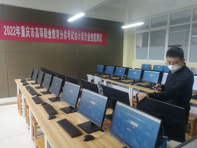 一年一次的重庆市高等教育分类考试会计技能测试将于2022年3月12日在我校举行,为保障高考的顺利进行,作为本次高考技术支持方的畅捷通信息技术股份有限公司员工张鑫荣、王倩、陈建宇、孟耀邦四位同志,提前两周来到学校开始题库建设、考试系统搭建、服务器安装等系列工作。经过加班加点、熬更守夜,一切准备工作基本就绪。