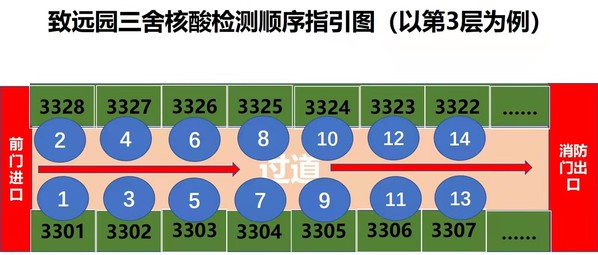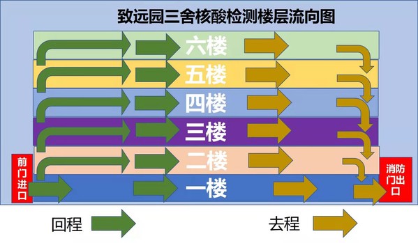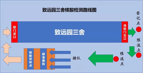 3月11日至今为止,学校组织做了7轮核酸检测,为了将核酸检测过程中的感染风险降低为“0”,落实“寝室之间距离不小于5米,学生之间距离不小于1米”、“应检尽检”的原则,每次检测之前,朱老师和同事们都要做大量工作,前一天晚上制定好核酸检测流程图,并在微信群通知到每位同学。检测前2小时敲门提醒同学们起床,检测前30分钟敲门提醒同学们在寝室做好准备,检测时以寝室为单位敲门限流放行。朱老师在核酸检测准备会上说:“我们致远园三舍核酸检测一定严格按照核酸检测行动方案执行,不能在宿舍内部出任何漏子,这是对学校、对学生、对我们自己负责。” 每次全员核酸检测,致远园三舍的老师们都配合默契,高效、科学的完成了任务。