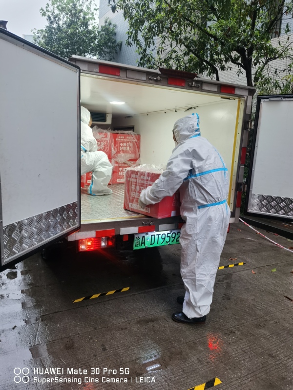 疫情侵袭的前几天,为保障每天3万余份热饭热菜的供应,肖丽、蒋勇、万永祥、李江南三天两夜,不眠不休,与时间赛跑,带领食堂清理物资、组织货源、通宵出餐、动用私人关系组织食堂运输队送餐。