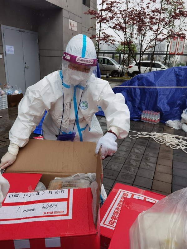 全力以赴、同心战疫。面对突如其来的疫情,打破了校园的宁静,数智财经学院普通老党员羊建在第一时间,主动申请从逸雅苑家属区返回学校抗疫第一线成为一名志愿者,每天风雨兼程到学生宿舍为同学们送餐送水,穿上厚厚的、密不透风的防护服,穿梭在宿舍不同楼层间搬运餐食和饮料,1-2个小时下来,也已是全身湿透,体力严重透支,等送完餐回到临时休息点(F栋实训室),经常是等不及洗漱就已精疲力竭。