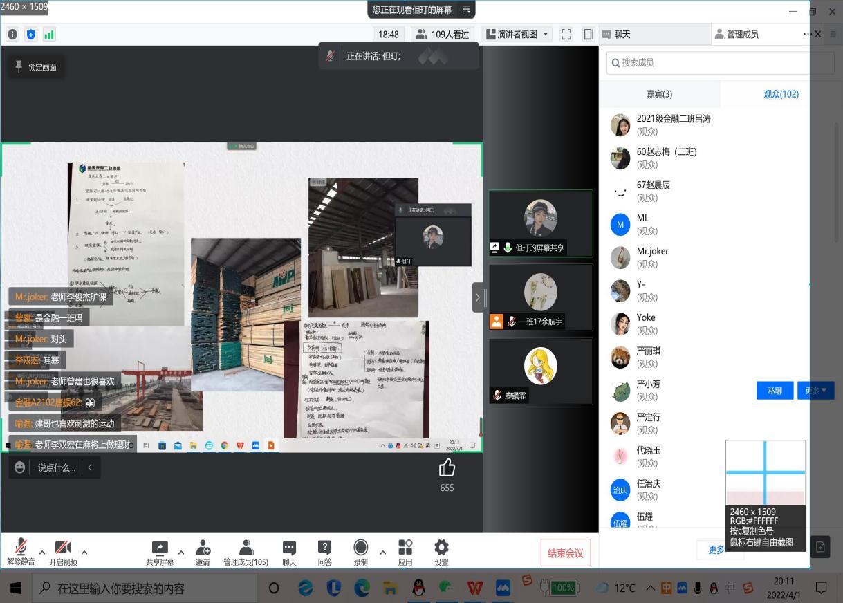 活动中,但玎老师从创新创业的意义、最新创业思路、当今创业环境、人生选择题等几个方面向学生诠释了创新创业近年来的新面貌,为学生答疑解惑,鼓励学生勇于思考、乐于实践,积极参加创新创业。