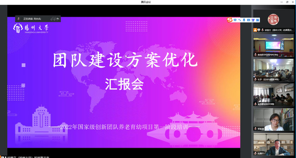 5月15日,2022年度养老育幼国家级职教创新团队工作会在扬州大学召开。来自全国养老育幼领域的12家国家级职教创新团队共同体院校、200余位专家和学者参加了线上会议。会议邀请了教育部行指委工作办公室副主任王国川、 宁波职业技术学院副校长郭春燕、金华职业技术学院教务处处长张雁平、上海健康医学院护理与健康管理学院院长朱爱勇、北京中医药大学护理学院原院长郝玉芳以及扬州大学教育科学学院原院长陈秋苹担任专家。我校智慧健康养老服务与管理团队全体成员参加了会议,智慧康养学院院长田奇恒在会上作主题发言。