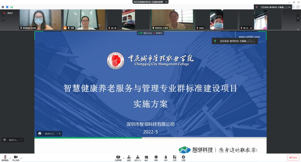 为进一步推进老年服务与管理专业群建设,提升专业群人才培养水平,5月31日,智慧康养学院通过线上线下相结合的方式召开老年服务与管理专业群标准建设项目启动会。智慧康养学院院长田奇恒、项目经办人苏红、双高专业群各专业带头人与教研室主任参加会议。深圳市智邻科技有限公司总经理李世强带领项目团队参与线上交流。