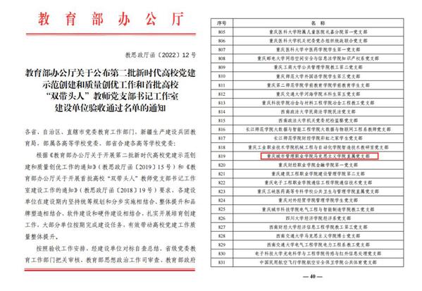 6月7日,教育部办公厅下发《关于公布第二批新时代高校党建示范创建和质量创优工作和首批高校“双带头人”教师党支部书记工作室建设单位验收通过名单的通知》。根据《通知》精神,我校马克思主义学院党总支(原马克思主义学院直属党支部)作为第二批“全国党建工作样板支部”培育创建单位顺利通过验收。