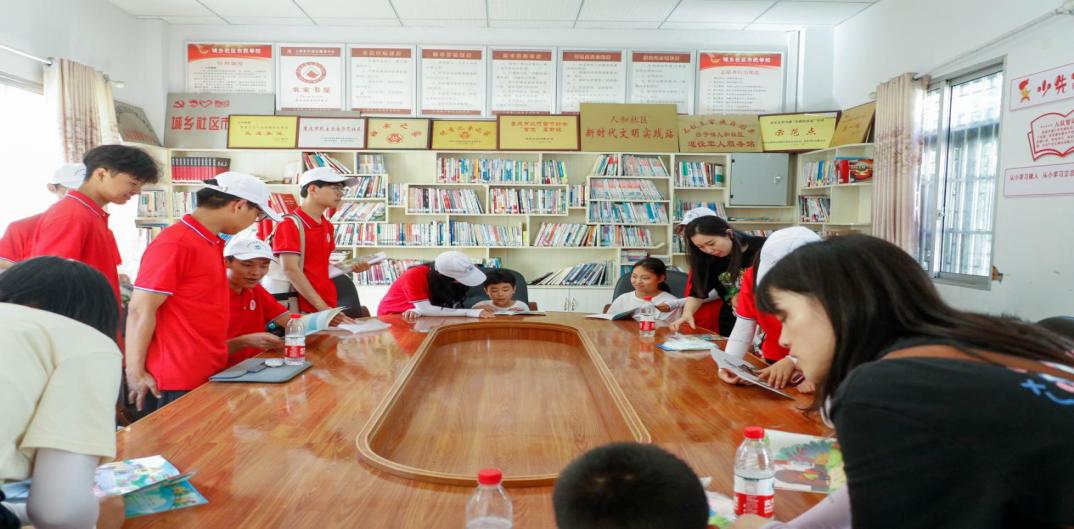 7月5日,“民族团结实践团”全体成员来到了石柱县沙子镇人和社区,与留守儿童一起开展了“四点半课堂”志愿服务活动。沙子镇宣传委员谭治国介绍了当地留守儿童的基本情况,包括他们的学习成绩、生活状况以及心理健康发展等方面的需求。针对孩子们自身的情况,实践团制定了个性化的帮扶计划,并有针对性地提供相应的教育辅导和心理疏导。依托社区居委会农家书屋,大学生志愿者们与留守儿童共读绘本,温馨的书屋里传出朗朗的读书声,声声悦耳、声声入心。临别时刻,志愿者为留守儿童赠送了绘本、毛巾等小礼品。