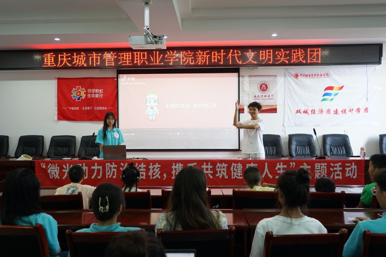 本次“守护青苗·点亮心灯”生命教育主题系列活动以“微光助力防治结核,携手共筑健康人生”专题宣讲拉开序幕。微课上,双城经济圈建设研学团成员——来自西南医科大学的志愿者,通过通俗易懂的语言、轻松欢乐的氛围和小朋友们热情互动,为社区儿童科普肺结核的早期症状、讲述如何防范、防治肺结核的健康常识。