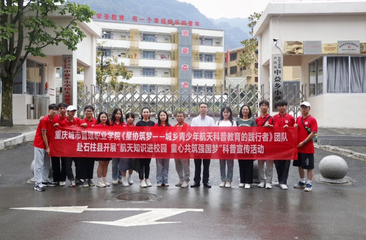 为扎实推进航天科普教育进校园,7月12日,我校大数据与信息产业学院暑期“三下乡”社会实践团赴石柱县为青少年开展了以“航天科普进校园 同心共筑中国梦”为主题的航天科普教育活动,在石柱县沙子镇联合重庆星协科技有限公司、沙子镇政府共建校企地青少年航天科普教育基地。石柱县沙子镇镇长刘小芸、重庆星协科技有限公司总经理林奎,大数据与信息产业学院党总支副书记江茂森,实践团指导老师及全体成员参加了上述活动。