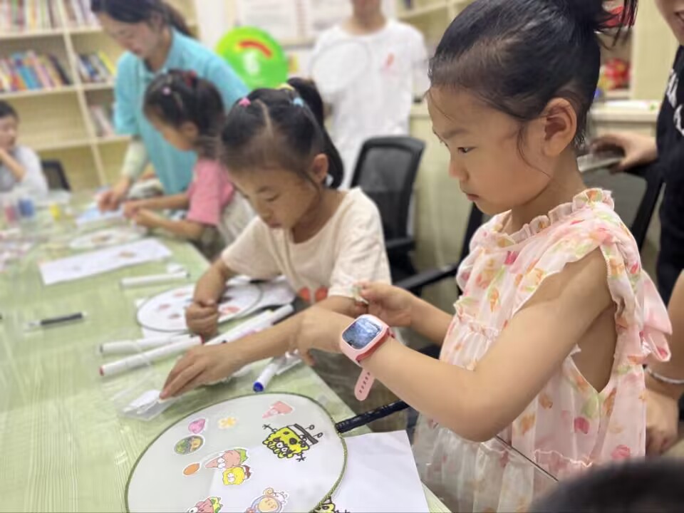 制作结束后,桌上摆满了各种各样的团扇——人物画、卡通画、贴纸画。这既是孩子们用心创作的艺术品,也是他们对美好瞬间的纪念,通过团扇绘画的方式是对传统艺术文化的热爱与传承。