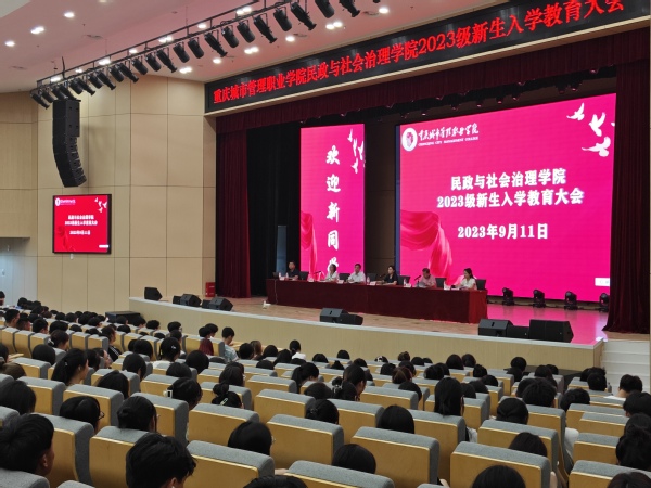 9月11日,民政与社会治理学院在学术交流中心召开2023级新生入学教育大会,学院党总支书记陶军屹、院长周良才、副院长李飞虎、学办主任王玉龙、教办主任李娇、2023级新生辅导员及2023级全体新生参加本次大会,会议由民政与社会治理学院党总支副书记李国英主持。