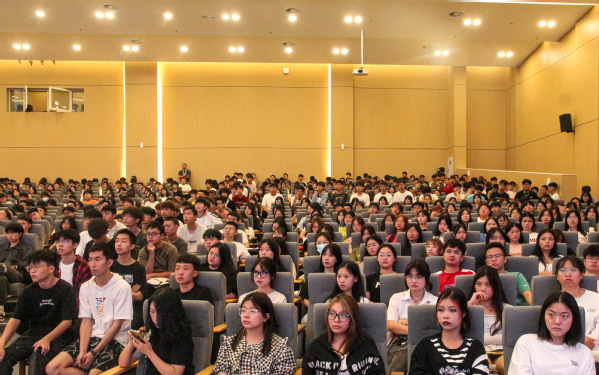 会议分为两个阶段进行,第一阶段是新生入学典礼。首先,全场师生起立奏唱国歌,大会在庄严的国歌声中开启了序幕。奏唱国歌结束后,举行了师生见面仪式。翁代云院长按专业顺序向在座学生一一介绍了6个专业的专业主任、专业带头人和辅导员团队以及学院领导、科级干部行政管理团队,同学们起立鼓掌,在激情感染之下,会场氛围达到高潮。