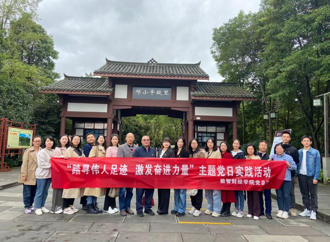 为进一步深入学习贯彻习近平新时代中国特色社会主义思想,继承和弘扬党的光荣传统和优良作风,增强党员教师的责任感、光荣感和使命感,提高党总支党员同志的凝聚力、战斗力和感召力,10月19日,数智财经学院党总支到四川省广安区协兴镇邓小平故里陈列馆和华蓥山红色教育基地开展了“踏寻伟人足迹 激发奋进力量”主题党日实践活动。