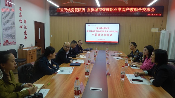 为进一步做好校企联动,更好地了解企业运营状况,10月23日,文化与旅游学院携手三亚天域度假酒店在敏学楼A408支部活动室召开产教融合交流会,现场与酒店总经理孙露、人力资源部经理庄娜一起洽谈校企深度合作。学院院长柏文涌、党总支副书记潘伟,通识教育学院副院长罗纪红,酒店管理与数字化运营专业有关负责老师参加会议。