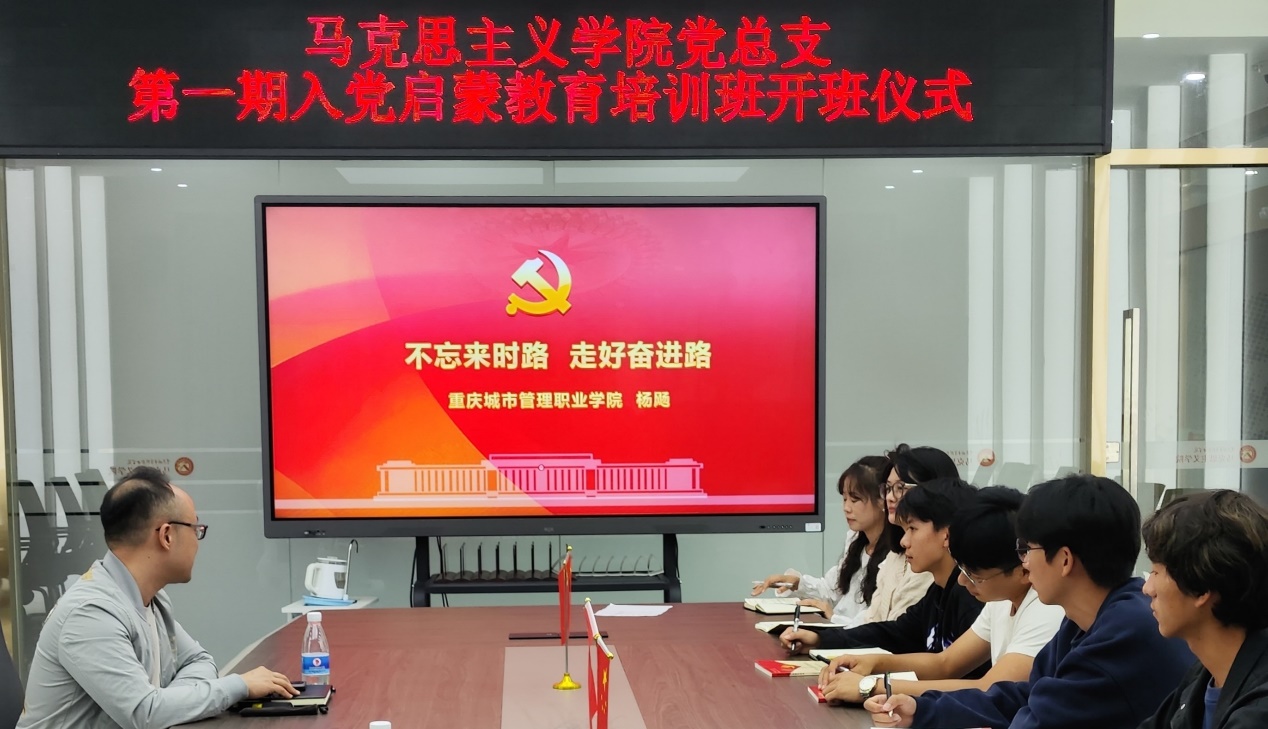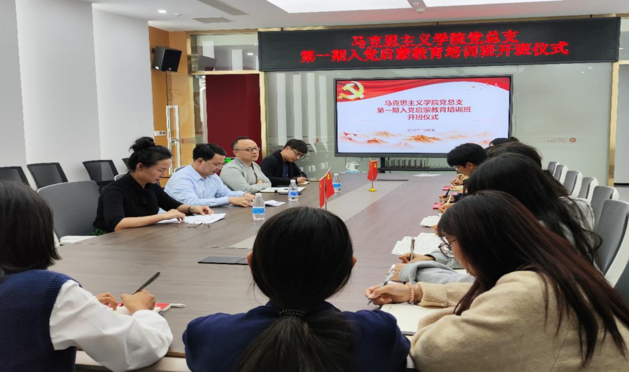 为加强学生的党性修养,指导大学生树立正确的世界观、人生观、价值观,培养正确的政治思想,端正入党动机,11月2日,马克思主义学院党总支在学院会议室召开了第一期入党启蒙教育培训班开班仪式。学院党总支书记喻永均、学院副院长张媛艺、辅导员左智谋参与开班仪式。本次仪式由学院党总支副书记、院长杨飏主持。