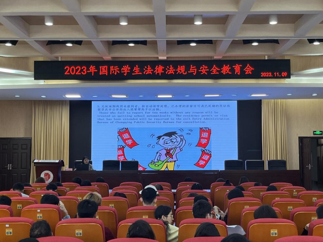 11月9日,2023年国际学生入学教育及法律法规安全教育会在办公楼103会议室举行,国际合作与交流中心、各二级学院相关负责人和全体国际学生参加了会议,宣讲人为通识教育学院党总支专职组织员邓春梅。