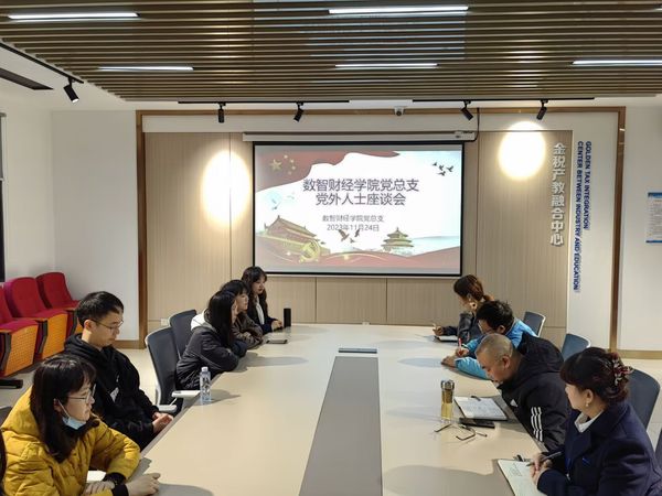 为进一步贯彻落实学校关于加强基层党组织统战工作的部署要求,激发学院党外知识分子、无党派人士参与学院事业高质量发展的积极性和主动性,统一思想、凝聚共识, 11月24日,数智财经学院党总支在致用楼C205会议室组织召开了主题为“发扬主人翁精神 助力学院高质量发展”的党外知识分子座谈会。会议由学院党总支书记蒋家宁主持,党总支副书记、副院长黄倩,专职组织员杨作亚及党总支部分委员、支部书记及党外教师20余人参加了会议。