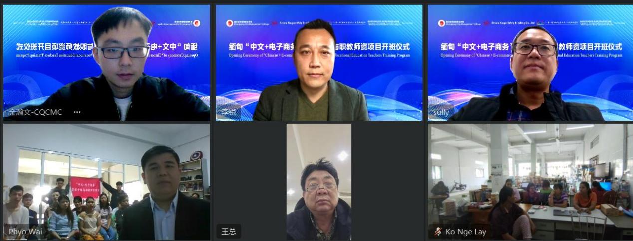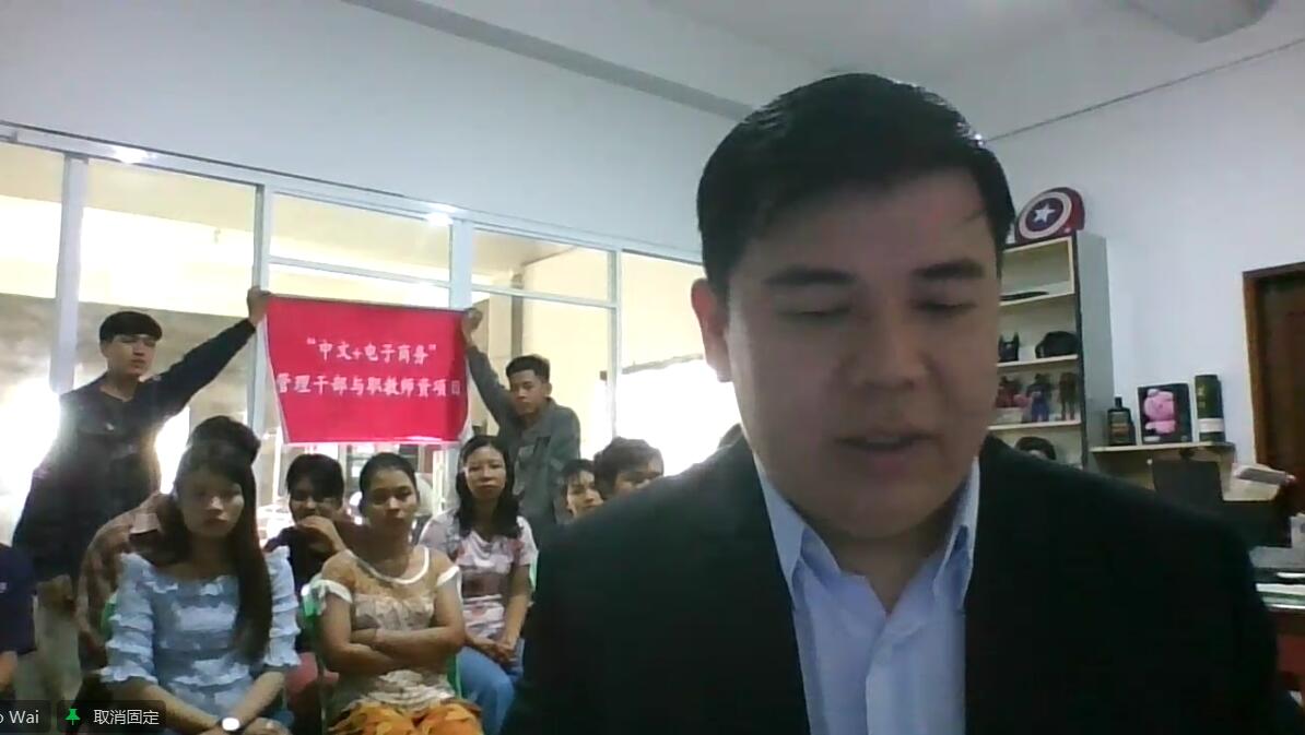 12月1日,我校举行缅甸“中文+电子商务”技术技能人才培训项目线上开班仪式。缅甸Shwe Nagar MDY Trading公司总经理Phyo Wai Yan Tun、驻中国办事处经理李锐,我校国际合作与交流中心主任孙玉中及培训班学员出席仪式。会议由我校国际合作与交流中心科长金瀚文主持。
