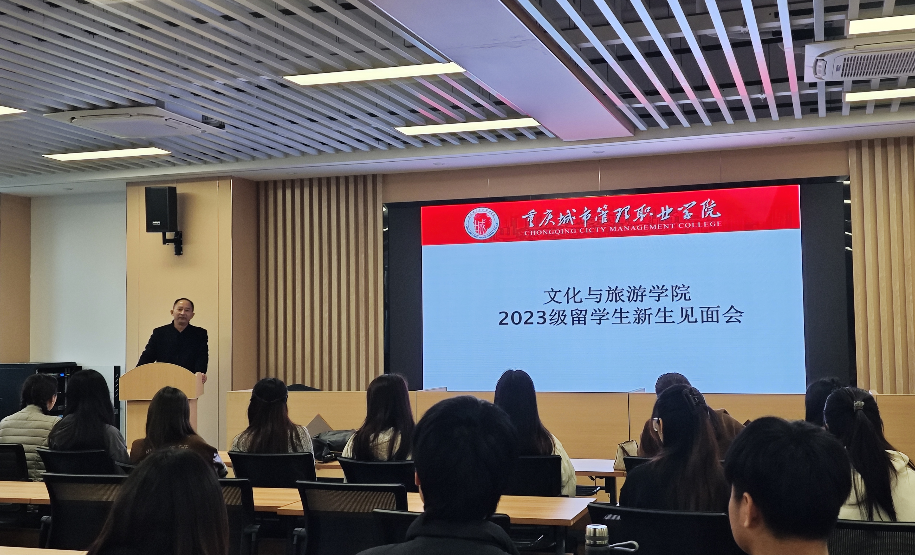 12月23日,文化与旅游学院留学生新生见面会暨安全教育会在重宾楼举行。文化与旅游学院党总支书记郑兵、旅游管理专业教研室主任王章郡、旅游管理专业留学生班级辅导员杨雨卓、园林工程技术专业留学生班级辅导员张灿以及文旅学院全体留学生参与本次会议。
