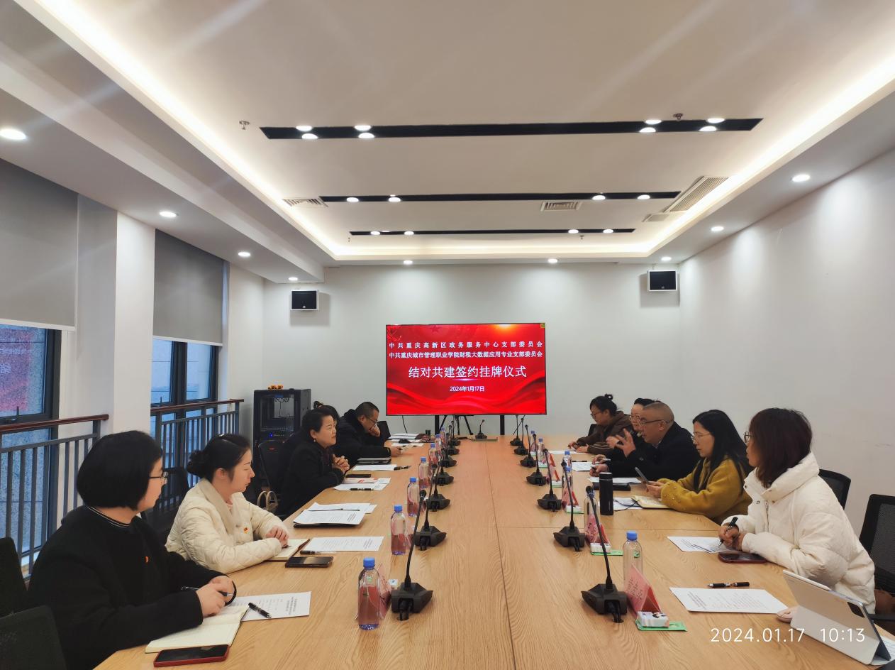 1月17日,数智财经学院党总支财税大数据应用专业党支部与重庆高新区政务服务中心党支部创新工作方式,以结对共建为契机,开展了现场参观交流活动并签署《党支部结对共建协议书》,助推高新区“数字重庆”建设工作,打造“政务服务+高校”改革新模式。