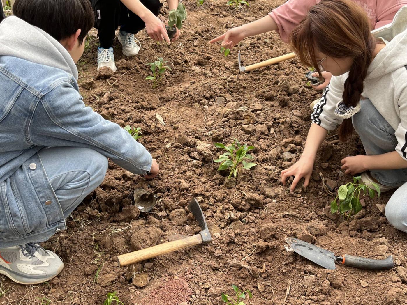 本次活动共有三个小环节:种植小课堂、知识抢答、种植竞赛。种植小课堂围绕节气、春耕等知识进行科普,了解春耕备耕对我国农业的重要性,熟悉自然界的规律,感受大自然的奥秘;知识抢答环节同学们积极举手,踊跃参与抢答;种植竞赛环节,同学们认真向评委老师们学习种植方法,并在技术指导员的指导帮助下,以饱满的热情进行挖坑、播种、填土、浇水等劳动,完成了番茄、茄子、辣椒等蔬菜的种植。