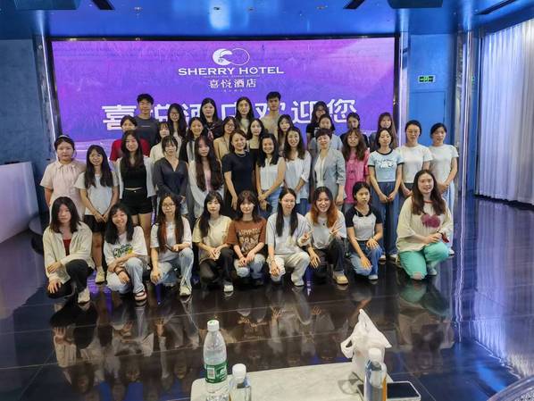 在喜悦酒店美好婚宴,人力资源总监伍梅和礼典策划总监黄影向同学们详细介绍了企业和礼厅,欢迎同学们学习和入职。在嘉礼宴会中心(工贸店),在宴师生们参观了宴会厅的各个区域,详细了解了宴会厅的设施布局、装饰风格以及不同主题宴会的策划方案。通过现场观摩,学生们对宴会策划与执行的各个环节有了更加清晰地认识。此外,工作人员介绍了礼厅独特的设计理念,专业的服务流程,并对著名的案例进行分析讲解。