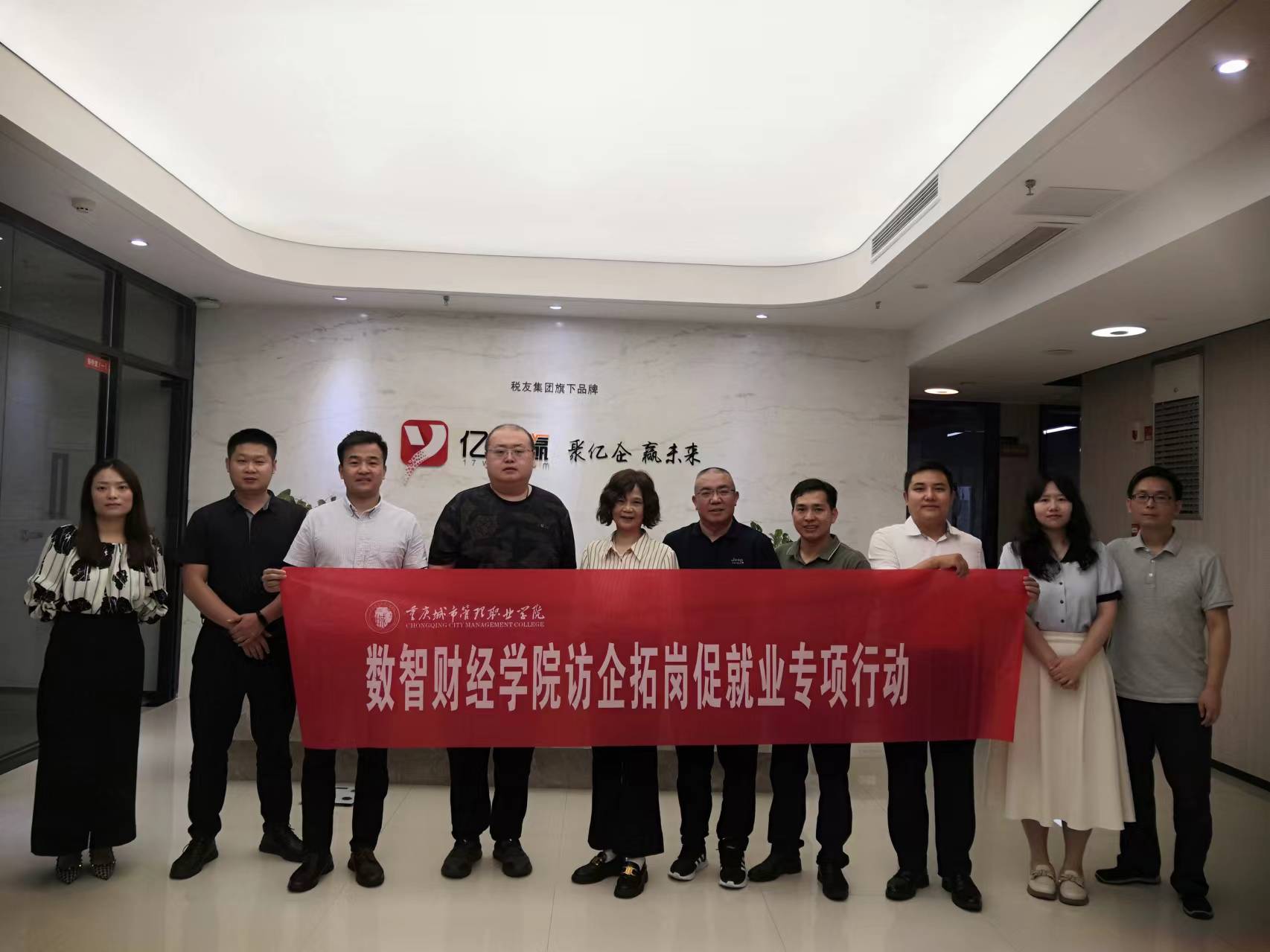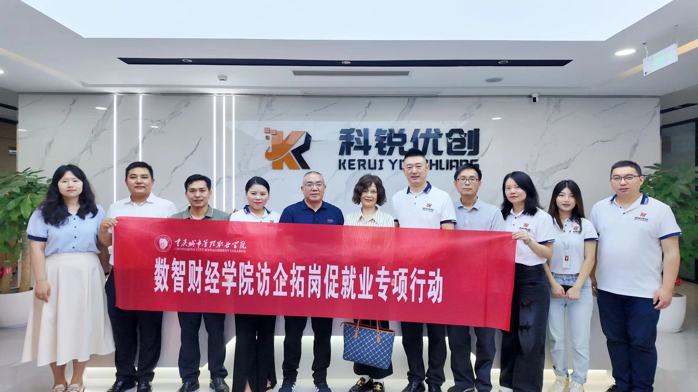 为深入学习贯彻党的二十大精神,积极开拓毕业生就业渠道,稳步推进毕业生高质量就业,切实发挥校企合作积极作用,精准对接重点行业、企业,了解就业单位人才需求,6月28日,学校纪委书记、监察专员陈丽带队赴重庆科锐优创企业孵化器有限公司和亿企赢网络科技有限公司重庆分公司两家企业开展“访企拓岗促就业”专项行动。数智财经学院党总支书记蒋家宁、副书记刘小刚、数智管理教研室主任文忆秋、校企合作专员严成武和就业干事帅爱军陪同前往。