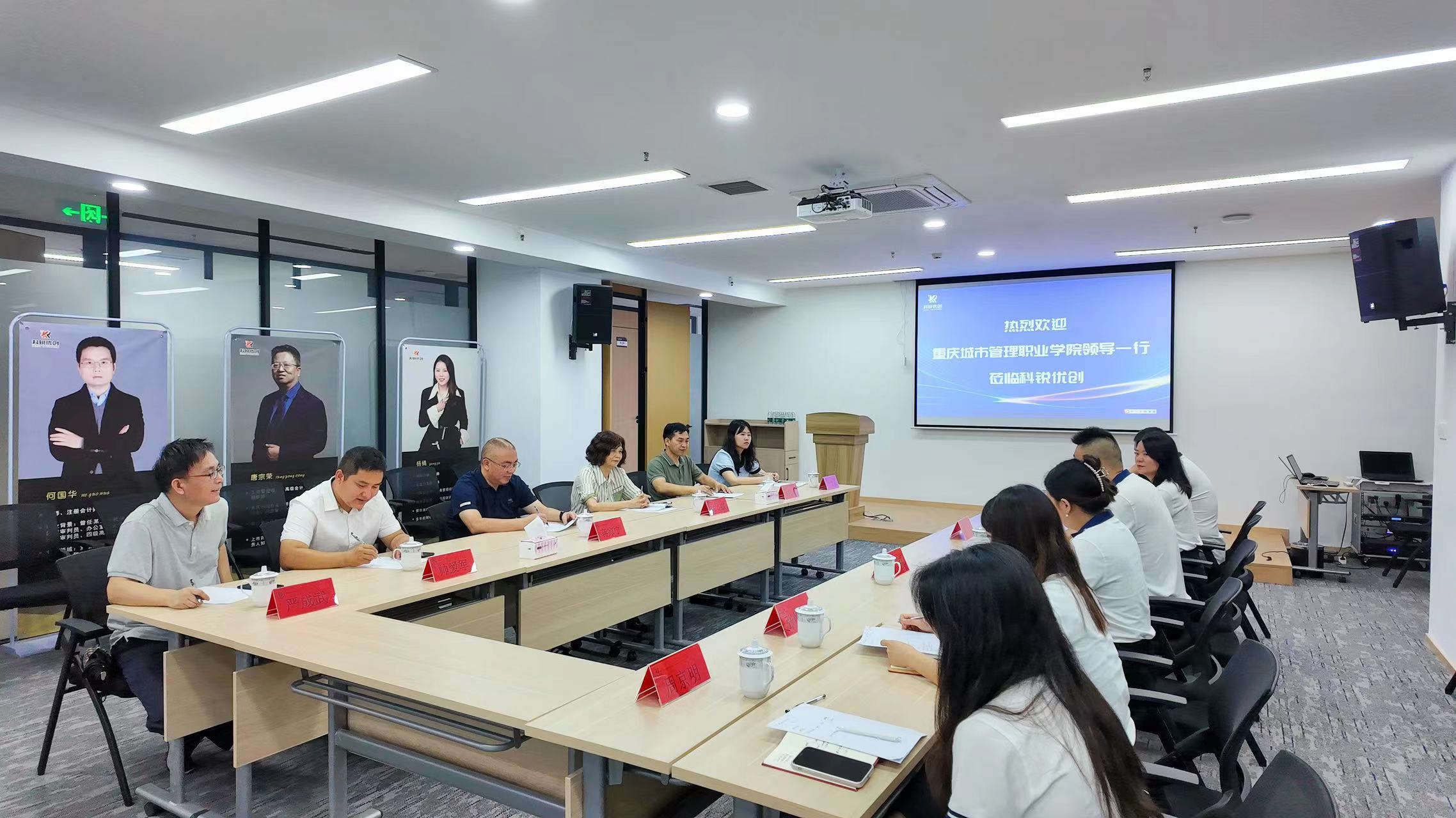 陈丽与两家企业相关负责人进行了深入交流,谈到以党建为统领,以联建共建为纽带加强双方合作,详细了解企业的业务规模、发展方向、人才需求和招聘计划等情况。同时,围绕校企合作、人才培养、实习实训、资源共享、师资互补等方面与企业进行了深入探讨。通过与企业面对面交流,进一步推动校企双方资源整合,充分发挥各自优势,在师资队伍培养、实训条件建设、教学资源开发和吸纳学生就业等方面加强合作,实现多赢。蒋家宁就数智财经学院发展历程、毕业生规模、专业设置、学生求职的特点、求职规律及岗位实习招聘的“黄金期”“关键期”等进行了细致地沟通和交流。刘小刚深入了解了两家企业在人才招聘中的痛点和预期,并结合学院近年来毕业生去向落实情况及财会人才培养目标展开深入交谈,双方初步达成了人才培养协同发力和岗位招聘同频互动的合作意向。