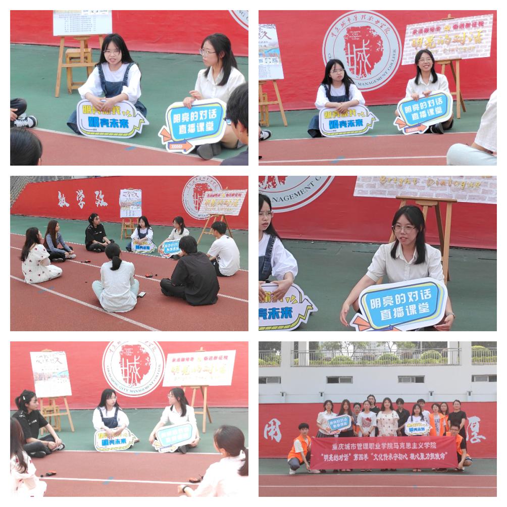 为进一步发挥思政课立德树人关键课程的引领作用,团结凝聚青年学子在弘扬重庆优秀传统文化中积极作为,5月18日到6月30日,马克思主义学院直播课堂《明亮的对话》第四季继第1集“走进千年古镇 探索传统文化魅力”播出后,陆续开展了“丝丝缝韶华 针针夺天工”“听山歌嘹亮 叹千年悠远”“看重庆文化 见川剧之美”“传承国粹精神 弘扬中医文化”4集直播课。《明亮的对话》直播课堂团队与重庆优秀传统文化传承人携手,讲好新时代重庆文化故事,与屏幕前的观众一起感受重庆优秀传统文化之美,引领更多青年自主自觉传承和弘扬重庆优秀传统文化。课堂同时在抖音、哔哩哔哩、超星课堂等多个平台同步直播。
