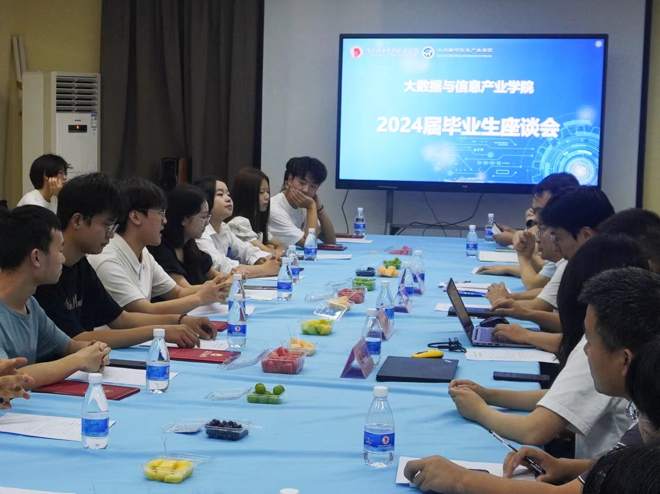 7月2日,大数据与信息产业学院召开了2024届毕业生座谈会。学院党总支书记董勇、副院长梅青平、党总支副书记江茂森,学院教研室、教师代表以及2024届毕业生代表欢聚一堂,共同回顾了在校期间的点点滴滴,毕业生们分享交流了自身的成长收获。座谈会由江茂森主持。