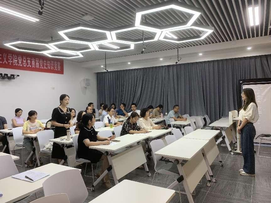 在现场提问环节,老师们就如何提高思政课教学质量、提升教师教学能力等问题进行了深入交流和研讨,陈文瑶教师提出三点建议。第一,提高思政课的针对性,注重结合学生的专业学习和时事热点,推动思政课程和课程思政同向同行,将思政小课堂与社会大课堂相结合;第二,认真挖掘史料,加强党史学习,在深入阐释理论的同时,要注重对史料的挖掘和运用;第三,更新话语体系,运用年轻人喜欢的话语,增强思政课的亲和力、生动性。老师们在交流研讨中受益良多。